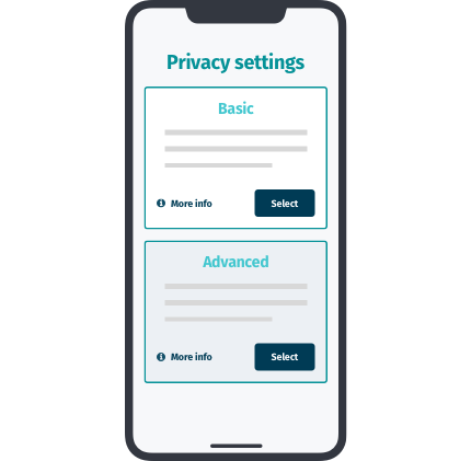 Make privacy setup during onboarding as quick and painless as possible while providing options. In this case, Advanced could take the user to an option screen with detailed controls.